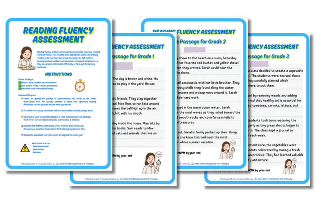 While schools provide valuable support and regular updates, as parents we also have an important role in monitoring our children’s progress. Having your own way to track reading fluency development helps you stay actively involved in your child’s educational journey – and that’s exactly what this free reading fluency assessment provides.